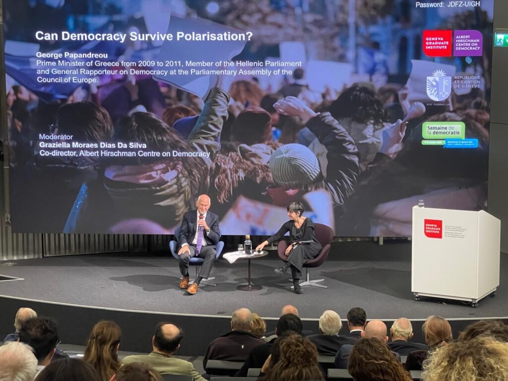 Στο πλαίσιο της φετινής Εβδομάδας Δημοκρατίας της Γενεύης, ο Γιώργος Α. Παπανδρέου συμμετείχε ως κεντρικός ομιλητής σε ειδική εκδήλωση που διοργάνωσε το Albert Hirschman Center του Geneva Graduate Institute, σε συνεργασία με την τοπική κυβέρνηση της Γενεύης, με θέμα «Μπορεί η Δημοκρατία να επιβιώσει της πόλωσης;»