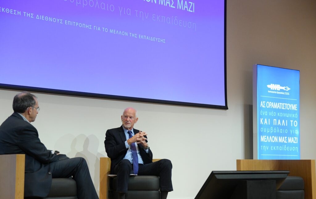 Συζήτηση Γιώργου Α. Παπανδρέου και Παύλου Τσίμα στην παρουσίαση της έκθεσης της UNESCO: «Η νέα επανάσταση θα είναι παιδαγωγική»